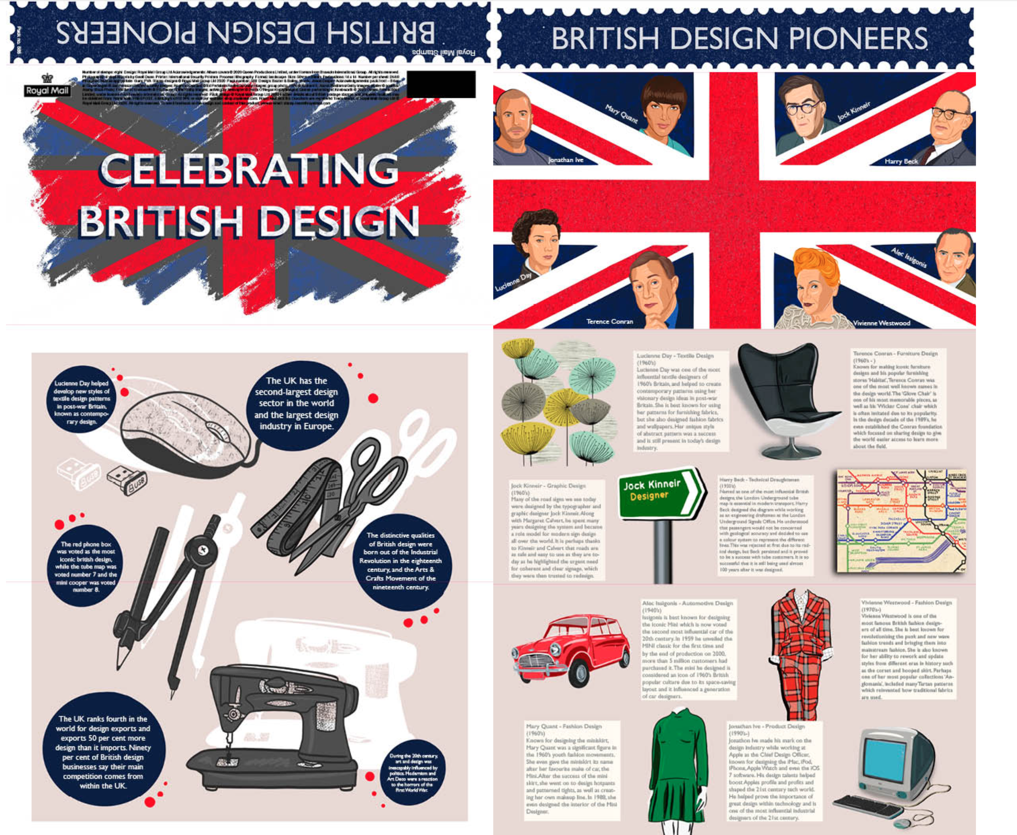 A live project which illustrates british design pioneers within a stamp format, as well as the design of the stamp pack and hand stamps.